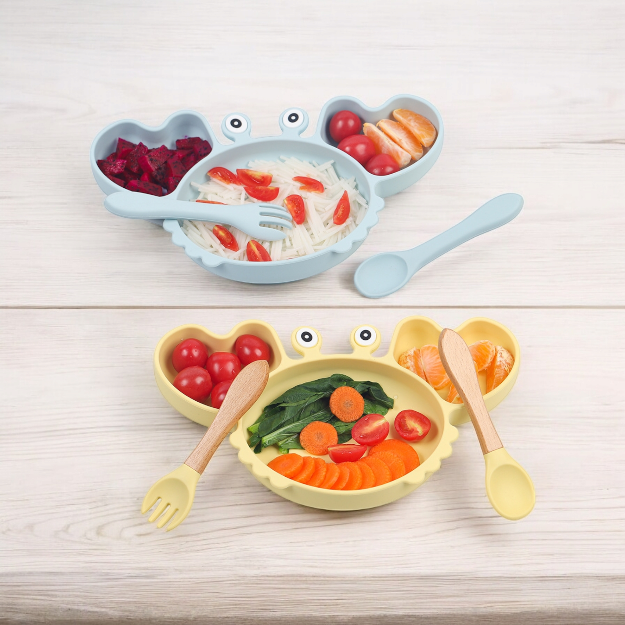 Turn mealtime into a fun and stress-free experience with this adorable Crab Plate Tableware Set! Perfect for children aged 6 months and over, this 9-piece set is both practical and playful, making it the perfect companion for little ones learning to eat independently.